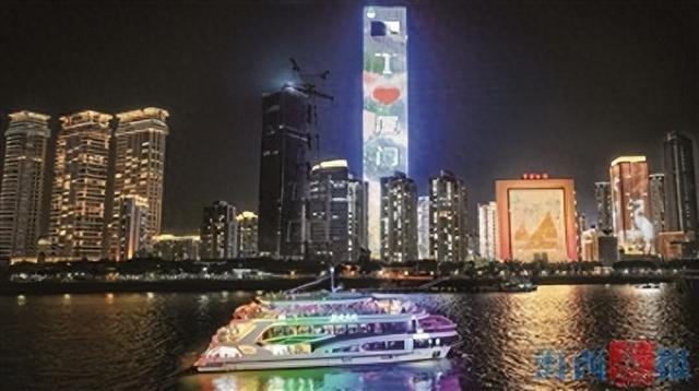 晨报讯(记者 陈成沛)游船在鹭江璀璨灯光中航行,当行至福建第一高楼——厦门绿发中心时,楼体大屏亮起“春遇厦门 幸会有你”“I♥厦门”等标语,船上音乐声起,游客通过手中的荧光棒,与福建第一高楼“隔空传情”——荧光棒颜色与楼体颜色交相辉映、同频共振。在音乐声中,海波流光、船岸溢彩,海面与城市之间形成流动的光影对话,构成独具厦门特色的夜游场景。